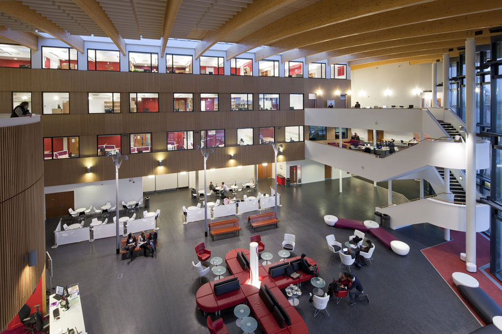 A dramatic architectural statement and sophisticated use of space of the highest standard. Acting as a visual and functional focus of the University of York’s new campus at Heslington East, the new building makes a striking impression on the emerging campus. The articulation of the different functions provides a series of carefully considered views in the emerging masterplan. The hub encloses a large but welcoming communal central space and accommodates a wide range of academic facilities around the perimeter. This complex but coherent design is of standard that reflects the national significance of the university.