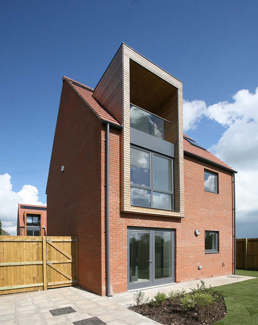 Two exemplary houses of a simple but sophisticated contemporary design that combine architectural refinement with an excellent use of internal space. The designs are underpinned by energy-saving objectives and are based on simple rectangular plans, steep-pitched roofs and brick walls. The architect has shown how it is possible for good design to lift everyday elements into works of architectural quality.